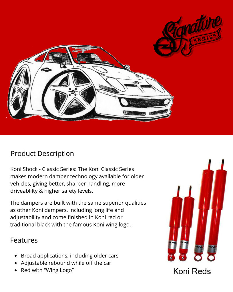 Genuine Koni Red High-Performance Shocks, recommended for street and sport applications on the Opel GT. Features legendary Koni quality and adjustability. Best when used in conjunction with our part #3008 rear shocks. (Note: Will also fit Kadett B, with limited travel).